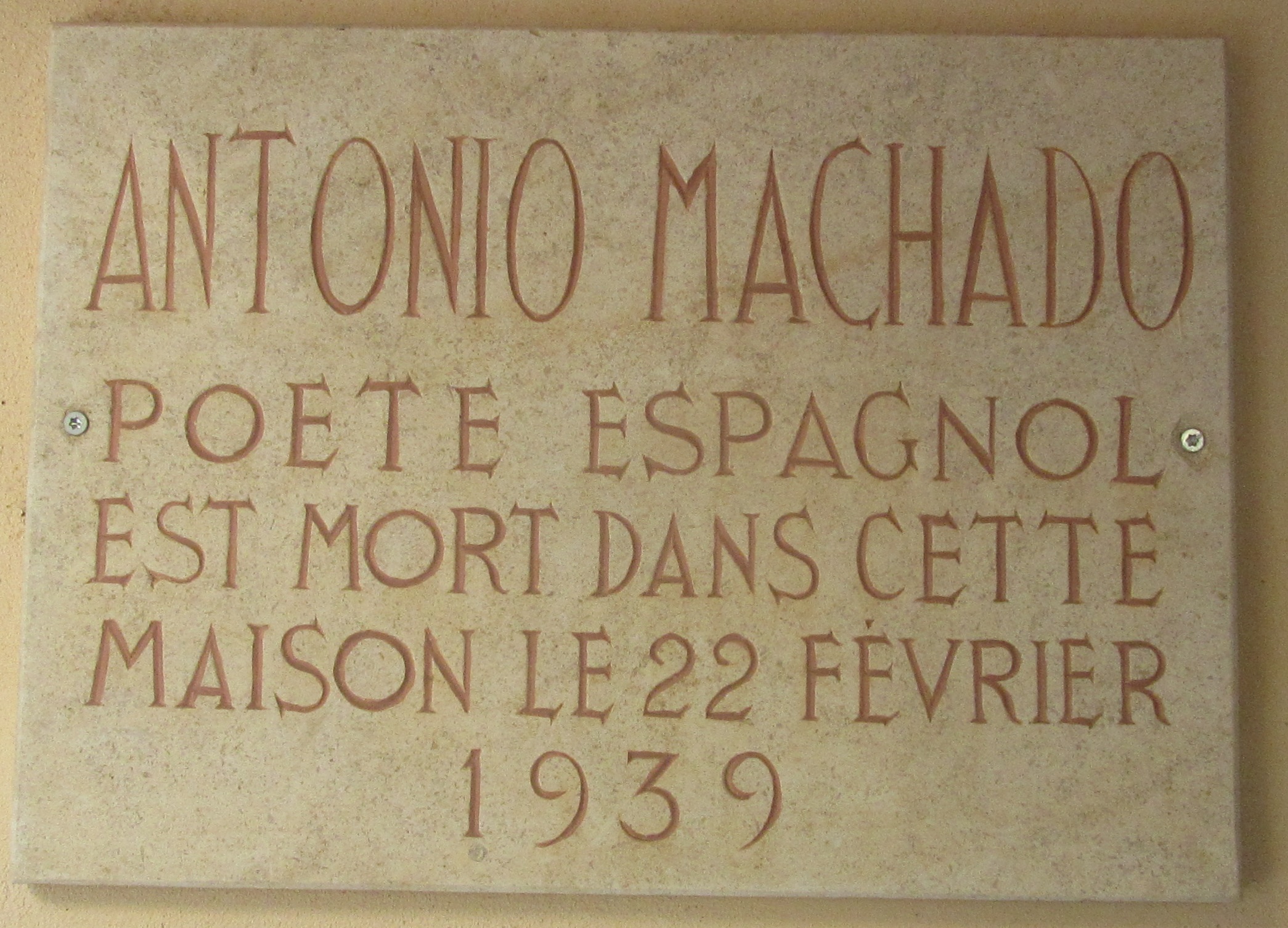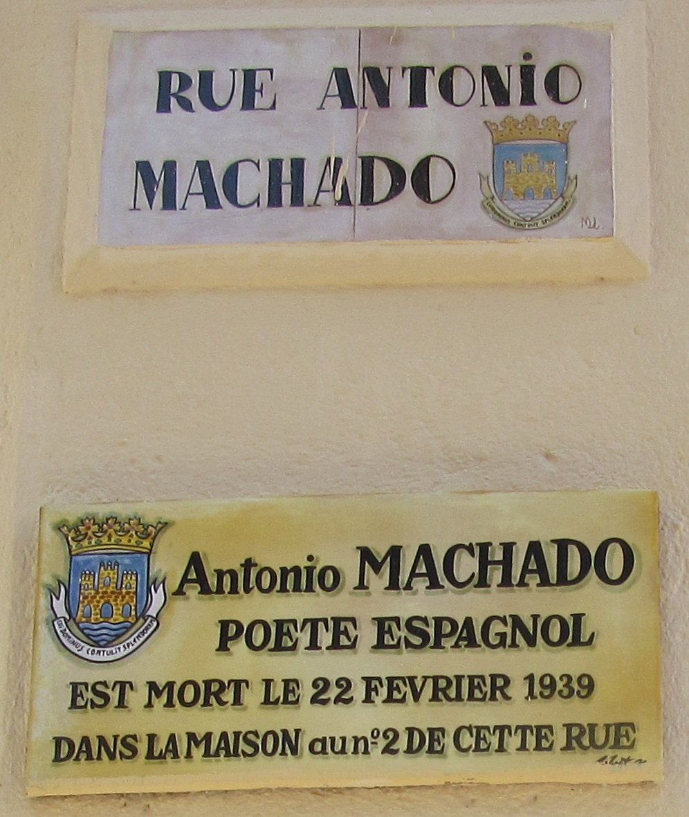 Fuimos por la calle Antonio Machado hasta la Casa Quintana, en la que Machado pasó sus últimos días. Hoy, rehabilitada, alberga L’Espace Machado, un lugar dedicado al poeta español. |