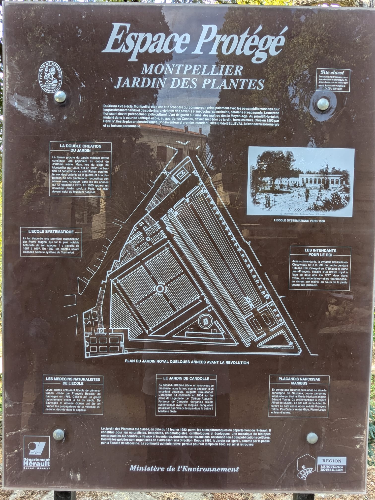 El Jardin des Plantes es el jardín botánico más antiguo de Francia (fundado en 1593) y depende de la Université de Montpellier. Fue catalogado como Monumento Histórico en 2009.