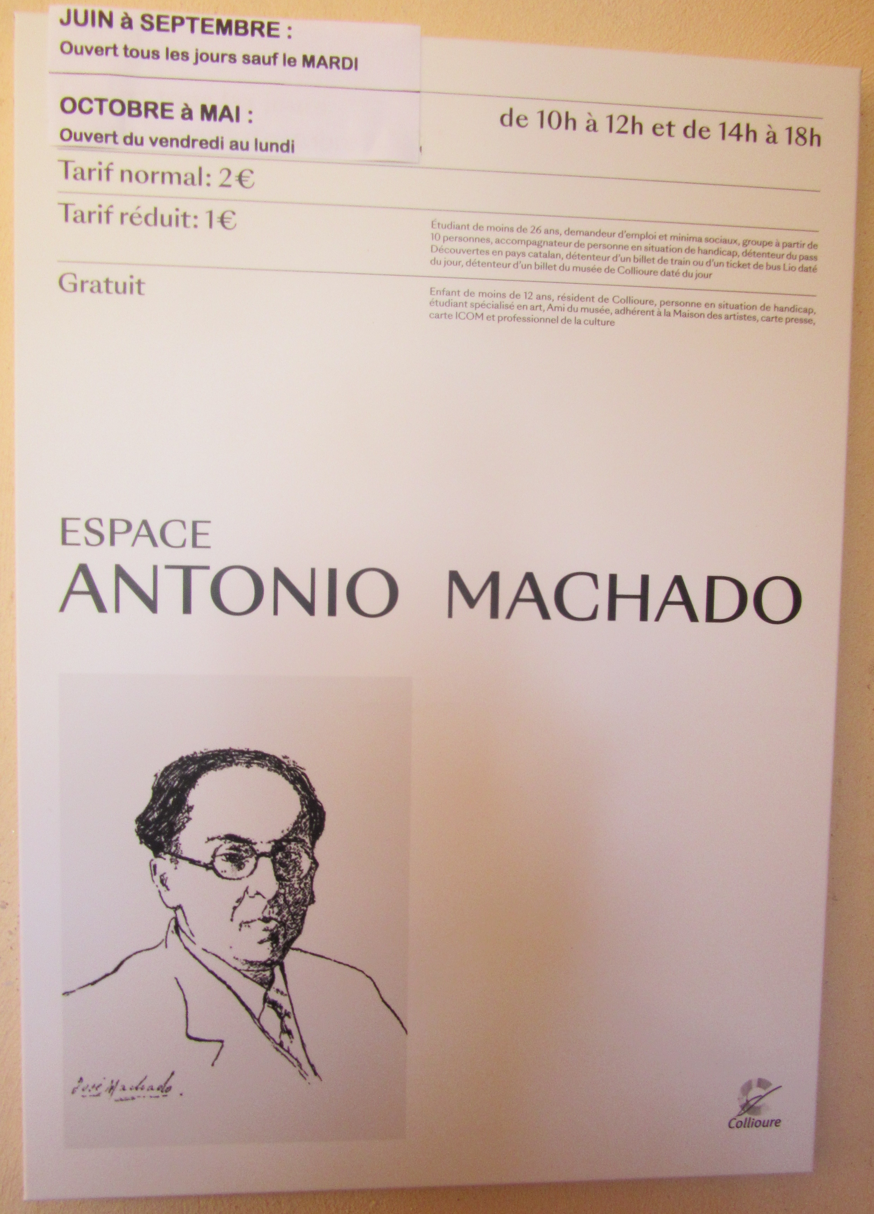 Fuimos por la calle Antonio Machado hasta la Casa Quintana, en la que Machado pasó sus últimos días. Hoy, rehabilitada, alberga L’Espace Machado, un lugar dedicado al poeta español. |